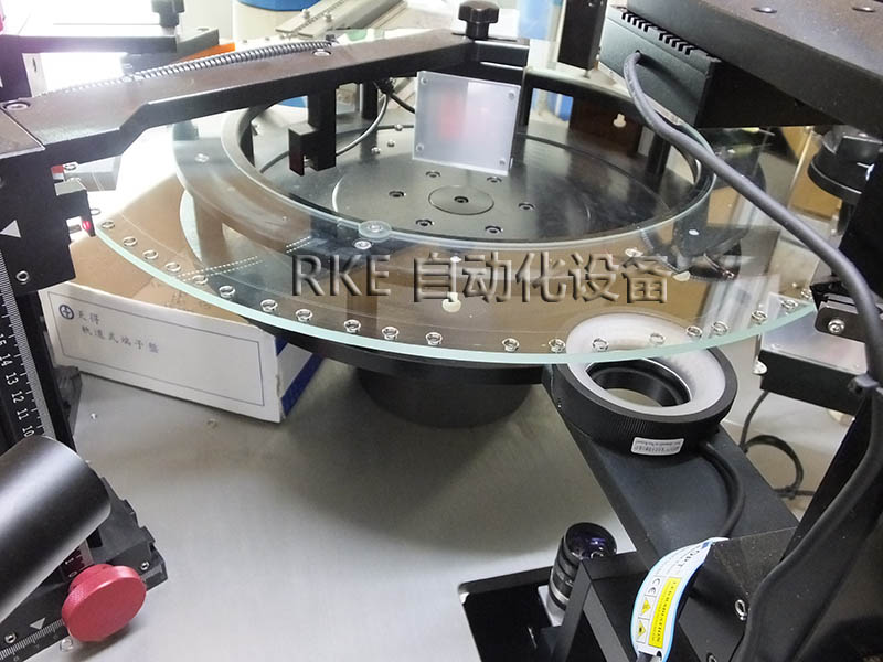 CCD視覺檢測五金環(huán)產(chǎn)品,利用玻璃的透光性,把物品放在玻璃盤上進(jìn)行檢測,節(jié)省勞力,檢測速度快,效率高。